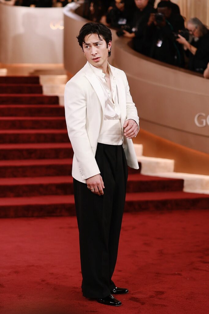 Точно – изненадени сме што оваој Канаѓанец се најде и на нашата листа на најдобро облечени. Но, во ноќ полна со просечни изгледи за црвениот тепих, Хадсон Вилијамс сигурно го освојува тортата во однос на машката мода. Стилизирана од Анастасија Вокер (која соработувала со имиња како Тревис Келси, Шабузи и Песо Плама), ѕвездата родена во Камлупс, Британска Колумбија, изгледаше елегантно во ова црно-бело одело на Џорџо Армани со кумербунд. Накитот од Булгари лесно го надополнува овој outfit на актерот од „Heated Rivalry“.