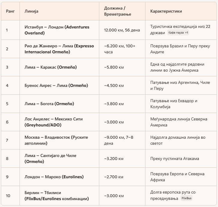Топ 10 најдолги автобуски линии: