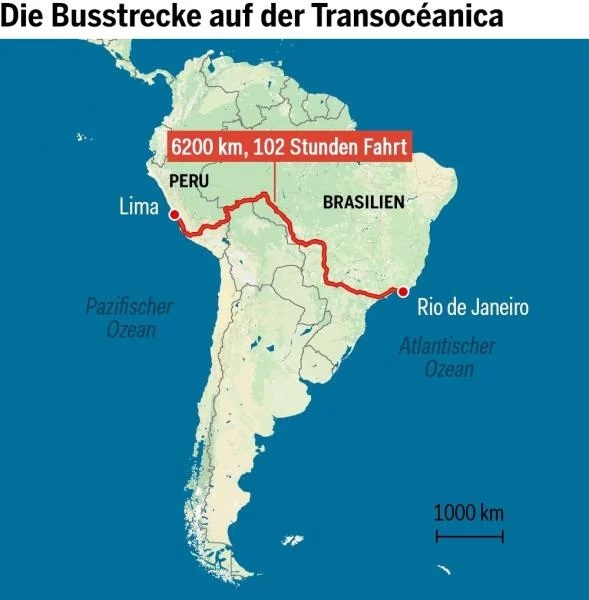 Автобуската линија „Трансокеаника“ е долга 6.250 километри, почнувајќи од Лима (Перу) и завршувајќи во Рио де Жанеиро (Бразил).