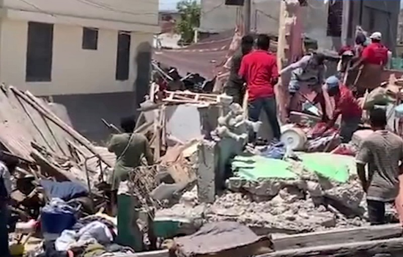 Brave folks in Okay (Les Cayes), #Haiti show the best of humanity by self-organizing brigades/work crews to help dig each other out of rubble from earthquake today. pic.twitter.com/5MQCWtKNSZ