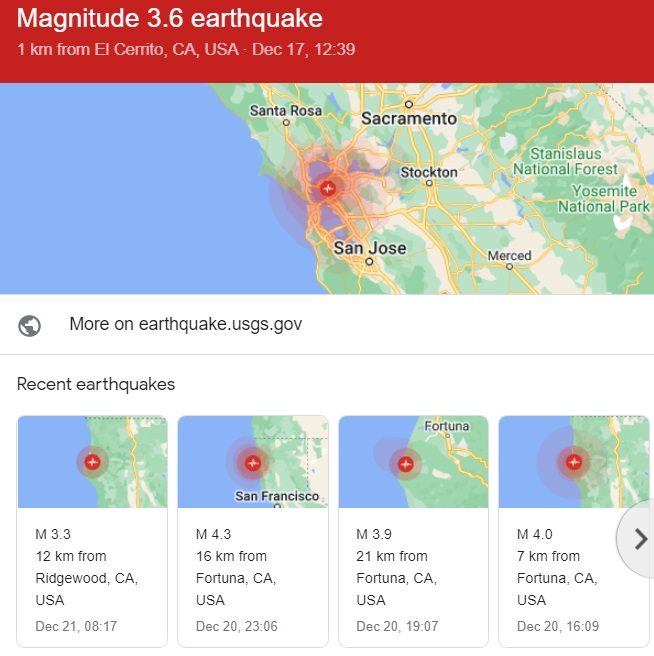 Земјотресот се случи на околу 350 километри северно од Сан Франциско, а по него имало околу 80 последователни потреси.