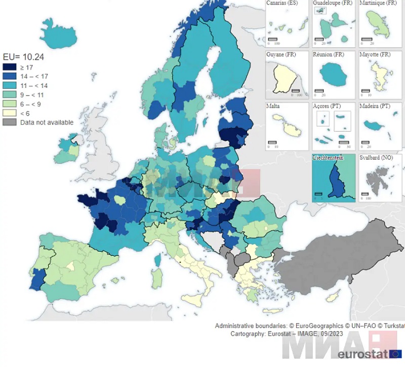 На самоубиства отпаѓаат 0,9 проценти од вкупниот број на смртни случаи во ЕУ во 2020 година, што претставува 10,2 самоубиства на 100.000 жители.