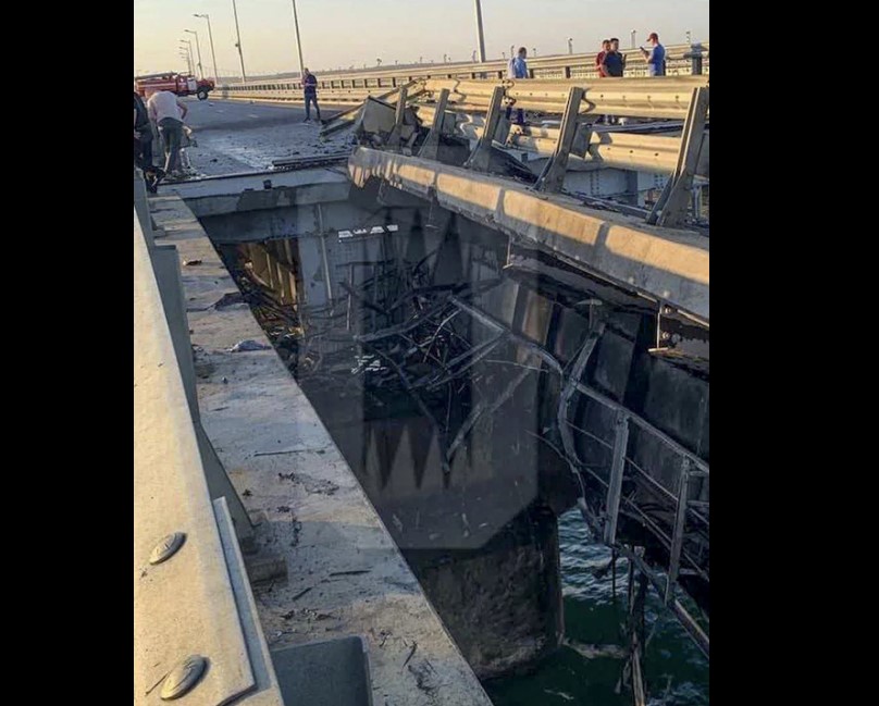 Колку е тешко оштетен мостот не е точно познато. Од руското министерството за транспорт тврдат дека конструкциите на распоните се на носачи, но носачите не се уништени. Експлозијата го оштетила коловозот од кримската страна. Сепак, судејќи според фотографиите и видеата објавени по експлозијата, штетата е посериозна. Распонот од кримската страна е навистина на потпори, но е силно поместен.