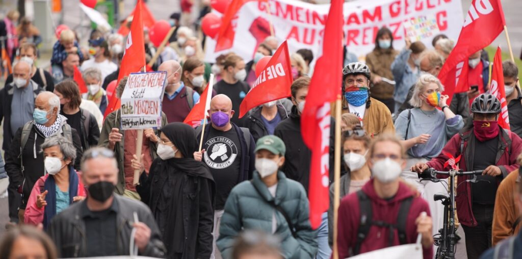 „Во последниве години се појави јасна линија на трајно уништување на демократските права и марш кон фашизмот“, рече Клаус Хартман, водач на социјалистичката Лига на слободоумници на својата публика, жалејќи се дека Германија стана нешто повеќе од „вазал“ на САД во Украина и на други фронтови. „Овие две републики ги имаат истите права што НАТО ги бара за својата клиентела, имено слободен избор да го изберат својот сојуз“.