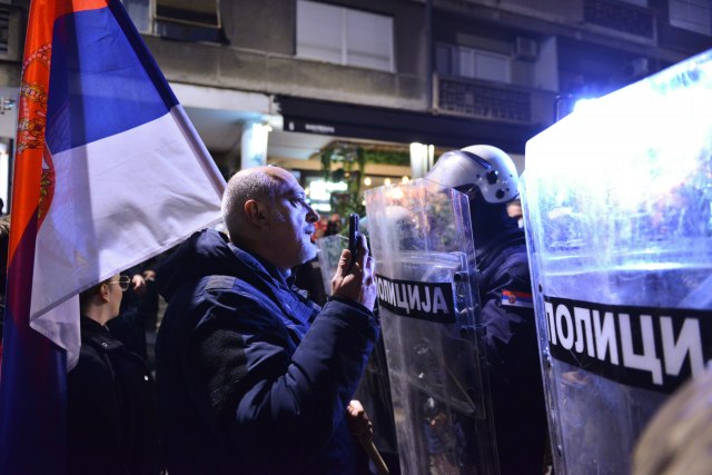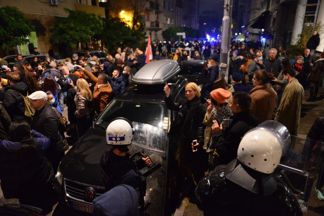 Вечерва во Белград, главниот град на Србија е напнато, затоа што група демонстранти, граѓани и активисти на невладини организации, но и членови на опозицијата сакаа да искажат незадоволство од инцидентот во улицата „Његош“, активистки со јајца го гаѓаа муралот на Ратко Младиќ, а потоа беа приведени.