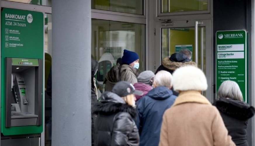 ЕЦБ синоќа објави дека Sberbank Europe AG, со седиште во Австрија и со филијали во Хрватска и Словенија, „доживеа значителен одлив на депозити како резултат на влијанието на геополитичките тензии врз угледот“, оценувајќи дека овие три филијали на рускиот кредитор „пропаѓаат или најверојатно ќе пропаднат поради влошување на нивната ликвидност“.