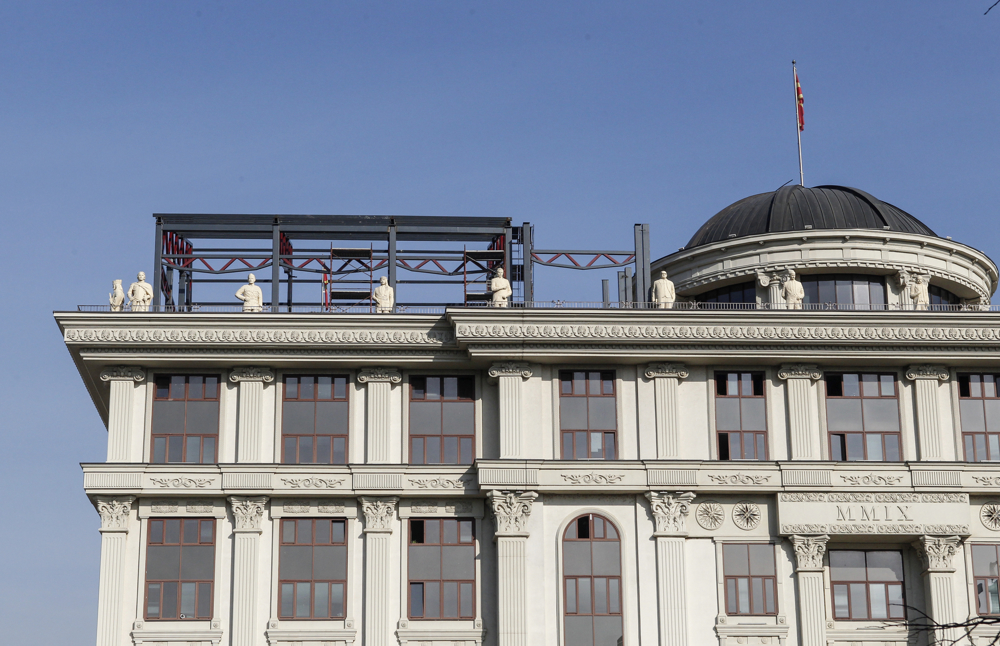 Настрешница на МНР беше најавена во февруари годинава, од министерот за надворешни работи Тимчо Муцунски, кој рече дека таа се прави заради протекување на покривот. Но, ова што се гледа над зградата на МНР опфаќа само една страна и воопшто не ја следи линијата на ротондата во средина, како што беше најавено.