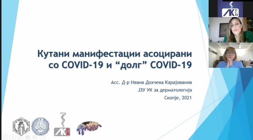 „Документирање на кожните симптоми поврзани со Ковид 19 е важен дел од сложувалката во градењето на нашето разбирање за болеста. Симптомите на кожата може да имаат клучна улога во откривањето на инфекцијата кај луѓето кои инаку се асимптоматски со што би придонеле за спречување на понатамошна трансмисија“, истакна асс. д-р Ивана Дохчева Карајованов.