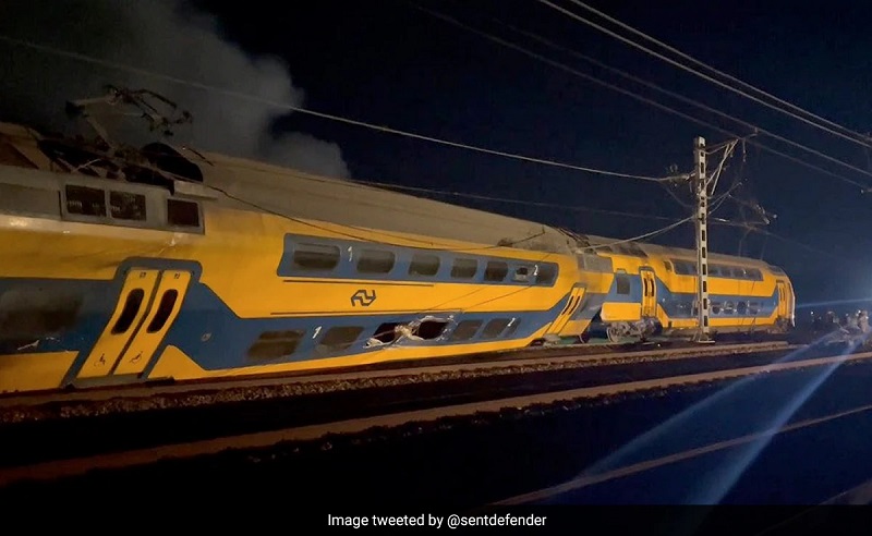 Патничк воз удрил во градежна опрема на шините меѓу Хаг и Лајден во провинцијата Јужна Холандија. Првиот вагон излетал од шините, вториот се превртел на едната страна, а третиот се запалил. Пожарот сега е изгаснат.