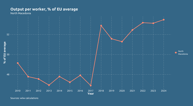 „На пример, просечна бруто плата во Македонија е околу илјада евра, што е околу една третина од просечната плата во ЕУ, каде што е околу 3 илјади евра. Ако ги екстраполираме трендовите од последните пет години, колку време ќе ни треба да го стигнеме просекот на ЕУ? Кога е платата во прашање, ќе ни требаат околу 40 години затоа што иако имаме ниски плати, 33 отсто под ЕУ, сепак последните години имаат раст и штом растат веројатно можеме да стигнеме“, вели Јовановиќ.