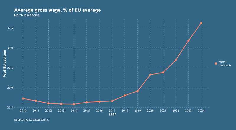 Просечната плата во земјава би можела да го достигне европскиот просек за 39 години, доколку продолжи трендот на раст кој што го имаше во последните пет години. Иако е ова прилично долг период, ако се спореди со оној на домашниот бруто производ, каде што би биле потребни и повеќе од 100 години за стигнување на европскиот просечен БДП по жител, делува дури и оптимистички. Уште е подобро кај минималната плата во земјава, која би можела да го достигне европскиот просек на минимална плата веќе за две децении, доколку продолжи трендот на раст кој то го имаше во изминатите пет години, кога тој беше најсилен.