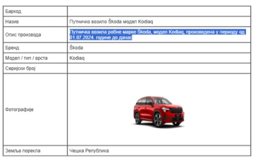Националната организација на потрошувачи (НЕПРО) во Србија денеска објави на веб-страницата на Министерството за внатрешна и надворешна трговија дека патничкото возило „Шкода Кодиак“ итно се повлекува од пазарот.