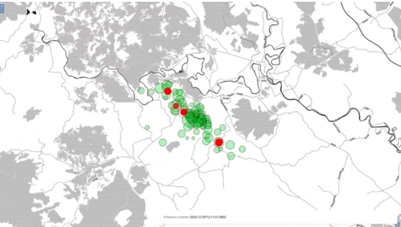 Сеизмолошката служба на геофизичкиот оддел на ПМФ во Загреб објави видео кое ги прикажува епицентралите на сите анализирани земјотреси што се случија на 28 и 29 декември 2020 година, пренесува хрватски Дневник.