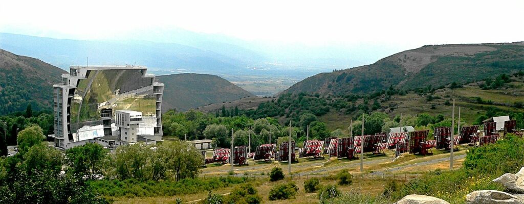 Овој импресивен комплекс, поголем дури и од Триумфалната капија во Париз, го користи сонцето за да достигне температури што ги надминуваат повеќето индустриски печки. Тоа е огромен систем од огледала што на прв поглед изгледа како футуристичка инсталација. Соларната централа е висока 48 метри и широка 54 метри и се состои од 63 подвижни хелиостати, или паметни огледала што го следат сонцето за да ја искористат максимално неговата енергија. Илјадници рефлектирачки површини ги доловуваат сончевите зраци, кои се насочени кон една точка со дијаметар од само 40 сантиметри. Во оваа точка, енергијата е концентрирана, овозможувајќи температури до 3.500 степени Целзиусови да се достигнат за само неколку секунди. Локацијата на комплексот не е избрана случајно.
