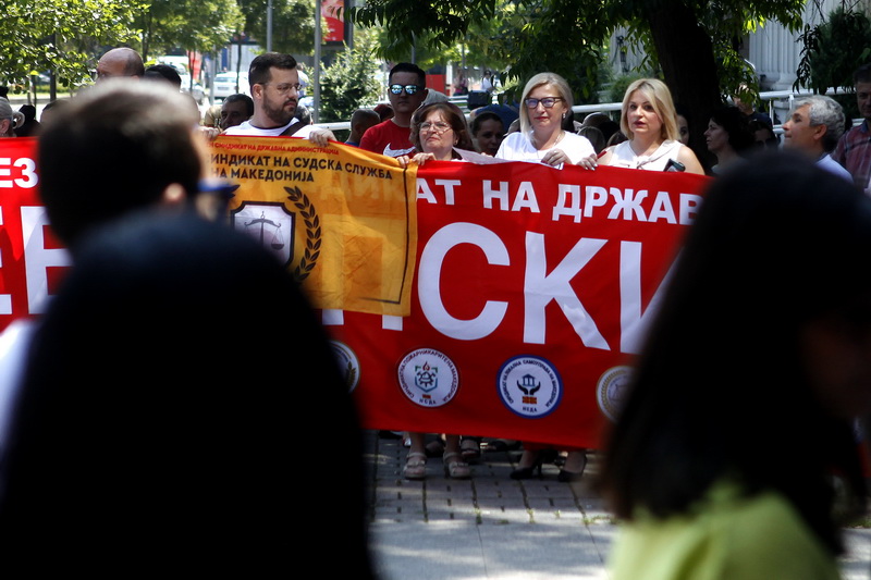 Независниот синдикат на судска администрација денеска одржа синдикален марш од пред платото на Основниот кривичен суд Скопје до Владата изразувајќи незадоволство од висината на платите во судската администрација и повика на преговори со Владата.