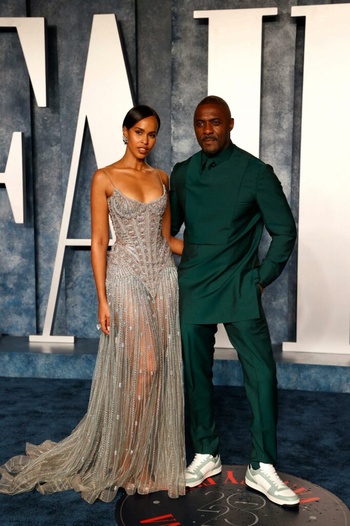 Внимание привлекоа и Сабрина Доур Елба и Идрис Елба – актерот наместо класичен смокинг облече сина јакна, а неговата сопруга се одлучи за светло зелен фустан, додека британскиот актер облече полежерен изглед во темно зелена нијанса со патики на синиот килим на забавата на Vanity Fair.