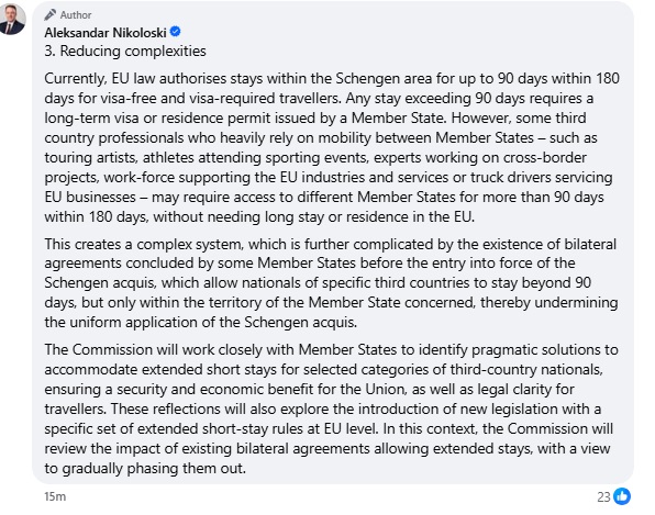 „Само што добив ОДЛИЧНИ вести од Брисел во врска со огромниот проблем на превозниците од Македонија! Нашите ставови се прифатени. Возачите се прифатени како ПРОФЕСИОНАЛЦИ. Тоа е тоа што го баравме.