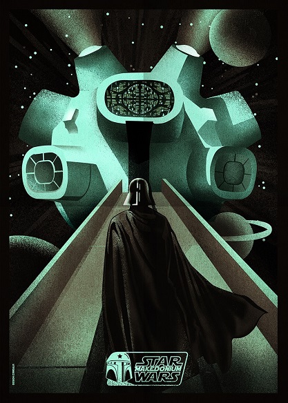 Во плакатите на Кардула ги гледаме ликовите како Дарт Вејдер и Јода сместени во и околу Македониумот, а споменикот на еден плакат е е претворен во пилотска кабина која многу наликува на вселенскиот брод „Фалкон“ на ликот Капетан Хан Соло од филмскиот серијал.
