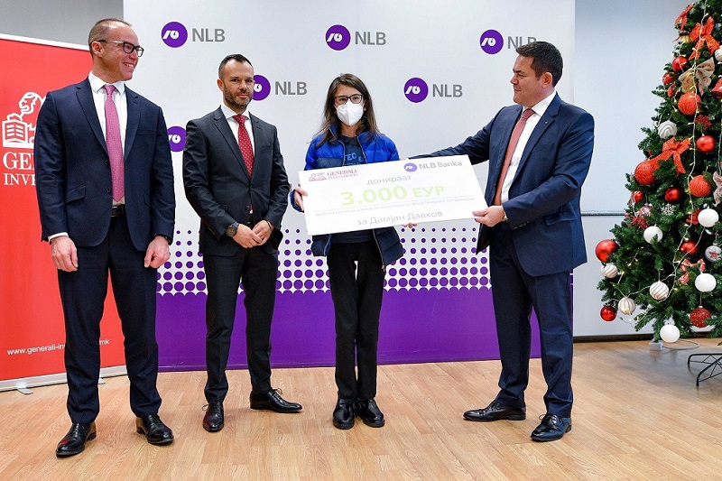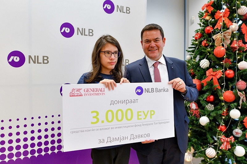 Соработката помеѓу двете компании беше одбележана со донација за младиот математички гениј Дамјан Давков од Штип, кому неодамна Советот на Општина Штип му го додели највисокото општинско одличје, наградата 8-ми Ноември. Претседателот на УО на НЛБ Банка Скопје, Антонио Аргир, Претседателот на УО на Generali Investments, Лука Подлогар и Главниот извршен директор на Генерали Инвестментс АД Скопје, Лазе Камчев, на Дамјан симболично му врачија вредносен ваучер од 3.000 евра, средства кои ќе се вложат во удели во Генерали Топ Брендови, со цел остварување дополнителен принос, кој во иднина тој ќе може да го искористи за свое школување и доусовршување.