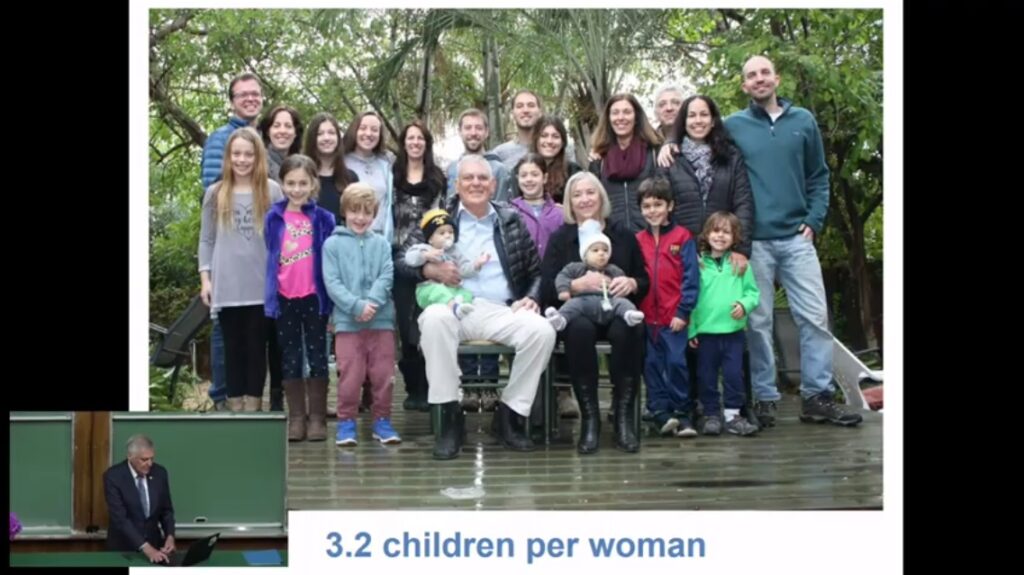 – Во Македонија тој процент е 1,3, но уште не сум видел семејство со 1,3 деца – се пошегува Шехтман – поздравувајќи ја својата сопруга (присутна во публиката) со која има две деца и 12 внуци.