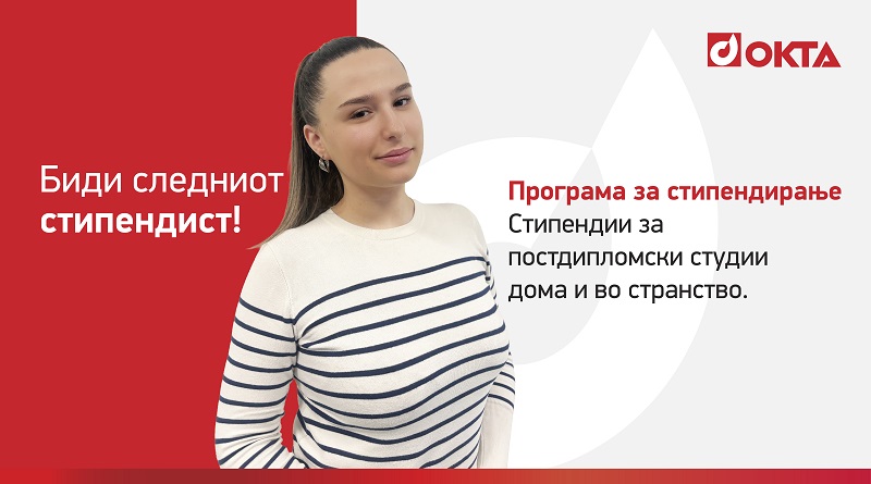 Во рамки на Програмата за стипендии на ОКТА АД – Скопје, членка на Групацијата HELLENiQ ENERGY, и оваа година ќе бидат доделени две стипендии за редовни постдипломски студии, со максимално времетраење од две години. Едната стипендија е наменета за студии во странство, со можност за аплицирање на универзитети низ Европа, Северна Америка и Австралија, додека втората стипендија се однесува на студии во Република Северна Македонија.