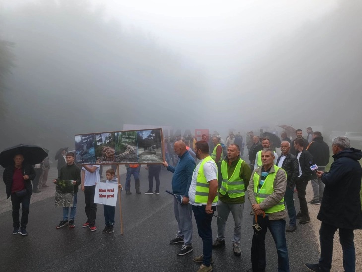 Со едночасовна блокада на регионалниот патен правец Гостивар-Маврово-Дебар, кај месноста Бунец, и истакнување на нови барања, жители на селата во регионот на Горна Река денеска одново протестираа против сечата на шума и управувањето со природата на територија на Националниот парк „Маврово“.