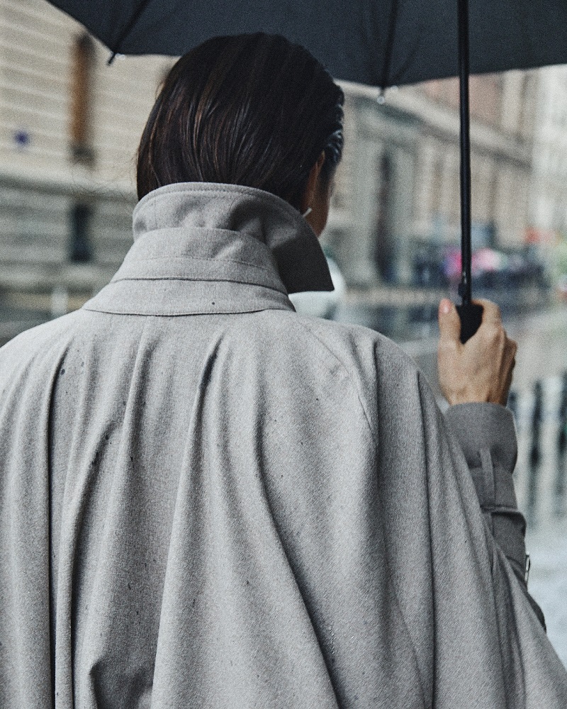 Ткаенините се богати — волнени, кашмирски и структурирани материјали што создаваат длабочина без да ја нарушат чистотата на формата.