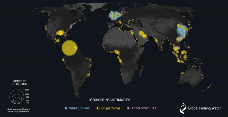 Во податоците е видлив бумот во развојот на офшор енергија. До крајот на 2020 година, турбините на ветер ги надминаа нафтените структури. Турбините сочинуваа 48 отсто од целата океанска инфраструктура, а нафтените структури сочинуваа 38 отсто.