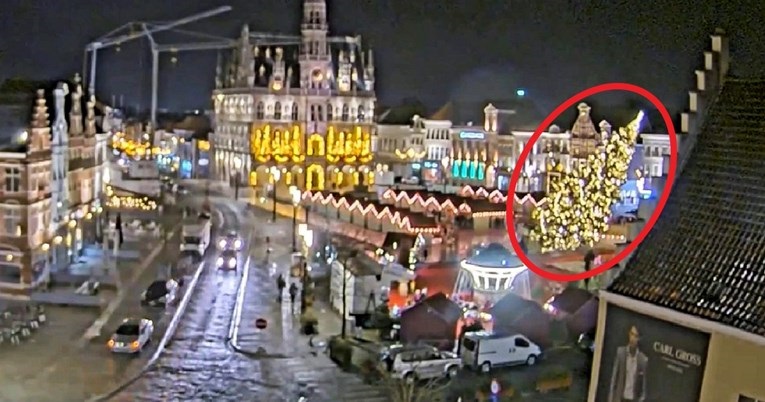Огромното дрво на божиќниот пазар во градот Однаарде, на околу 50 километри западно од Брисел, вчера вечерта не издржало силен налет на ветер, јави белгиската новинска агенција Белга.
