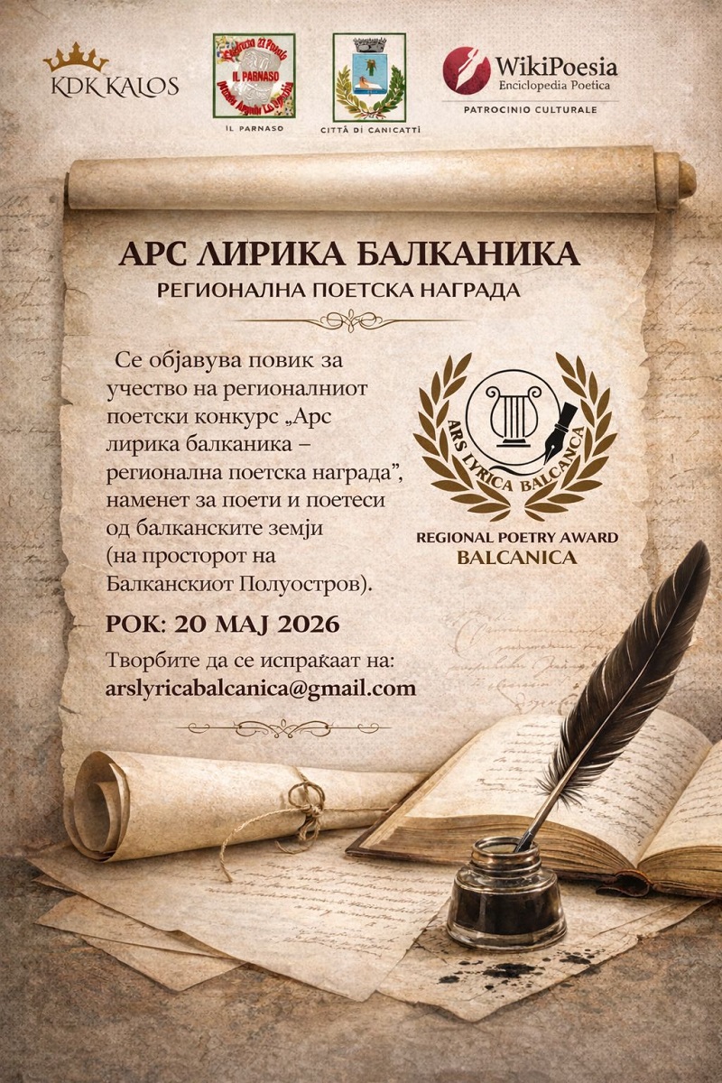 Oбјавен e регионалниот поетски конкурс „Арс лирика балканика – регионална поетска награда“.