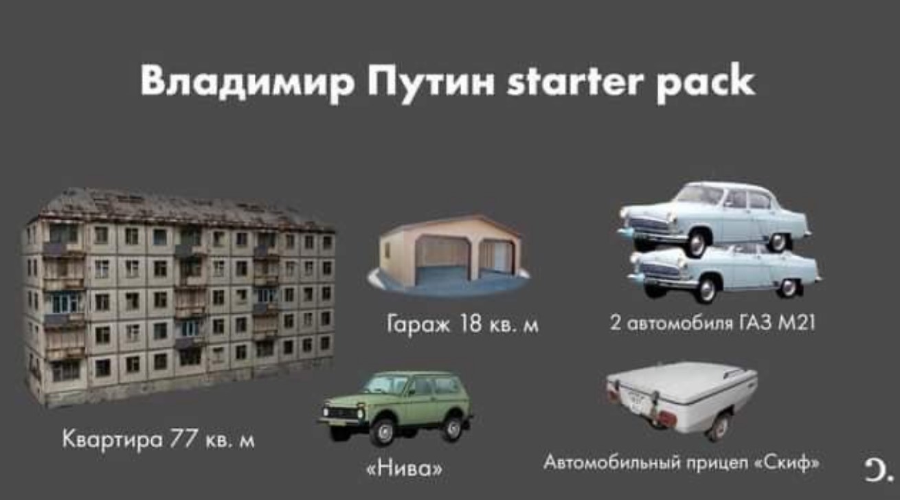 Во декларацијата на Путин, како и во 2018 година, кога минатиот пат се пријави во Централната изборна комисија, се вели дека тој поседува стан од 77 метри во Санкт Петербург и една гаража со површина од 18 метри квадратни на истото место. Исто така, списокот на возила што ги поседува не е променет: два автомобили „волга“, произведени во 1960 и 1965 година, „лада нива“ од 2009 година и популарната камп-приколка „Скиф“ од 1987 година. Путин, како и досега, поседува 230 акции на Банката Санкт Петербург (цената на една акција на Московската берза е 280 рубљи).