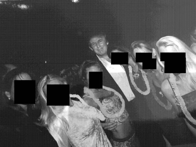 Една слика објавена во петокот покажува нешто што изгледа како чинија со нови кондоми со карикатура од лицето на Трамп; чинијата има знак на кој пишува „Трамп кондом 4,50 долари“, а секој кондом носи слика од лицето на Трамп со текст „Јас сум ОГРОМЕН!“ Друга слика го прикажува Трамп со шест жени чии лица sе редигирани од комисијата. Други ги вклучуваат Стив Бeнон и Епштајн како се фотографираат во огледало; Бил Клинтон со Епштајн, Максвел и уште еден пар; и технолошкиот милијардер Бил Гејтс со поранешниот принц Ендру. Поранешниот претседател на Харвард, Лари Самерс и адвокатот Алан Дершовиц, исто така, се појавија на слики од имотот.