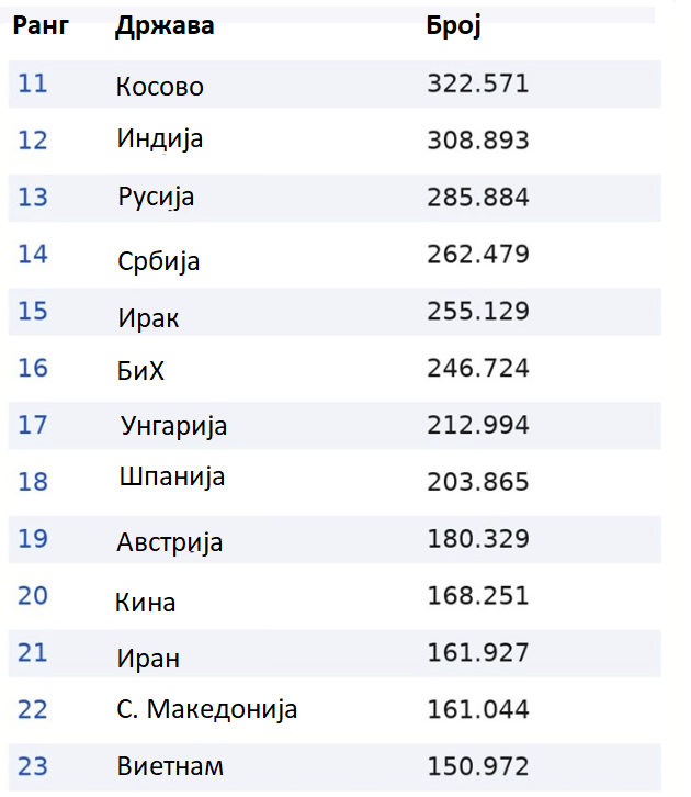 За споредба, на крајот на 2020 година, во Германија живееле 135.000 украински државјани. Сега недостасуваат само околу 125.000 имигранти од Украина за таа земја да го заземе првото место на ранг-листата.