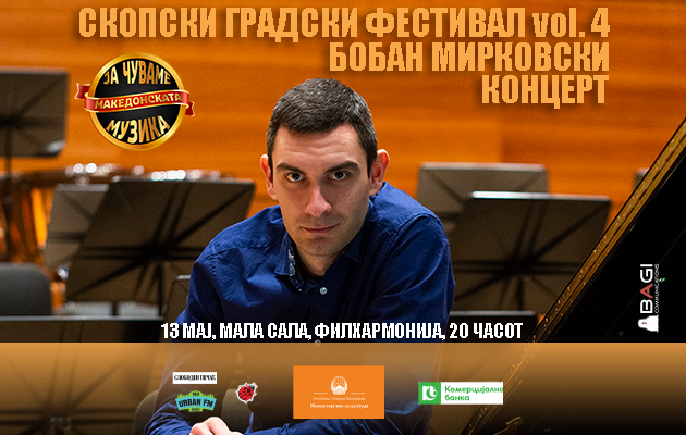 На 13 мај (сабота), во камерната сала во Филхармонија, пијанистот Бобан Мирковски ќе го промовира својот најнов музички проект со наслов „АЛБУМ„, кој содржи 12 врвни македонски композиции изведени на пијано. На концертот ќе бидат изведени некои од најпознатите македонски евергрини, создадени во периодот од 1969 до 2001 година. Ќе бидат застапени дела на некои од најпознатите композитори меѓу кои Славе Димитров, Љубомир Бранѓолица, Александар Џамбазов, Григор Копров, Влатко Стефановски, Кире Костов, Љупчо Мирковски, Тодор Бојаџиев, Димитар Масевски и Ванчо Димитров. Сите композиции ќе бидат изведени со нови аранжмани, специјално создадени за оваа пригода.