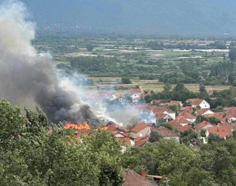 Огнот се шири многу бргу, а во близина има бензинска пумпа. Триесетина струмички пожарникари се обидуваат да ја изгаснат огнената стихија но во дворовите на куќите има многу горлив материјал поради што гаснењето е отежнато.