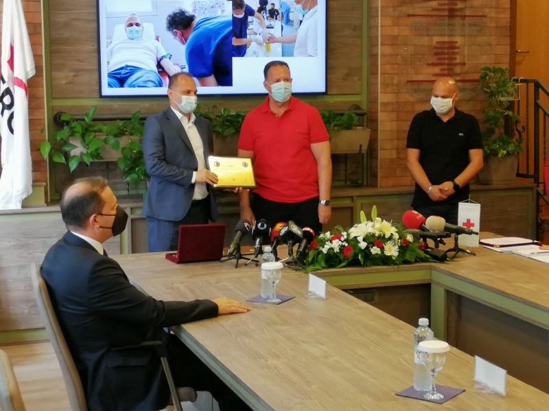 Црвениот крст по повод Светскиот ден на крводарителството се приклучи кон глобалната кампања за промоција на крводарителството под мотото „Дарувај крв и придонеси светот да продолжи да се движи“. Заедно со Институтот за трансфузиска медицина денеска им додели плакети на министерствата за здравство, за внатрешни работи и за одбрана во знак на благодарност за досегашната соработка, кои ги примија првите луѓе на овие институции министрите Венко Филипче, Оливер Спасовски и Радмила Шекеринска Јанковска.