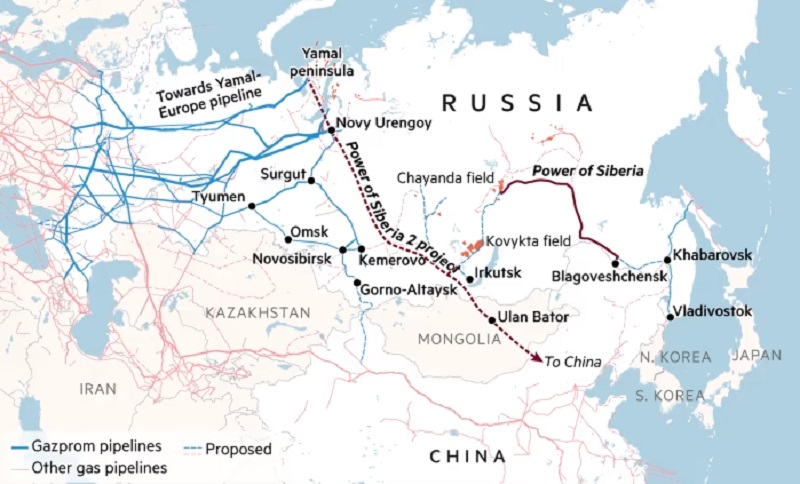 Кина веќе добива гас од источна Русија преку гасоводот „Силата на Сибир“ (ПС-1), кој започна со работа во 2019 година. Минатата година овој гасовод транспортираше приближно 23 милијарди кубни метри гас, а се очекува да го достигне својот полн капацитет од 38 милијарди кубни метри во 2025 година.