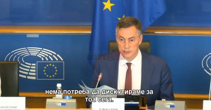 „Точката број 5 требаше да биде гласање за Извештајот за Северна Македонија. Тоа е одложено, па нема потреба да расправаме за тоа сега, рече на седницата претседателот на Комитетот за надворешни работи на Европскиот парламент“, Дејвид Мекалистер.