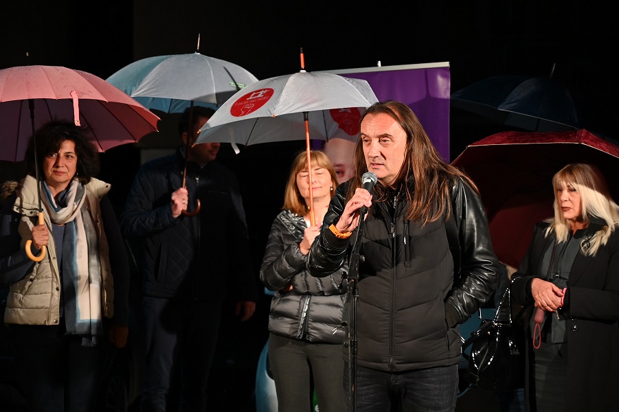 – Онаа непланска урбанизација и бетонизација што се прави ширум целиот град, па и овде, мора да престане. Ни треба брз, ефикасен јавен транспорт да можеме непречено да се движиме, ни требаат велосипедски патеки, ни требаат повеќе пешачки зони, места каде што ќе се сретнуваме, ќе разговараме, ќе го поминуваме времето заедно, што и не така одамна се случуваше и ние сите добро се сеќаваме како живеевме во една топлина, близина, соработка и сочувство со нашите комшии, со нашите пријатели, со нашите роднини, порача, претседателката на ДОМ, Маја Морачанин.