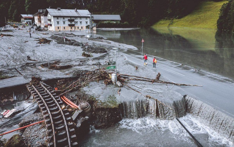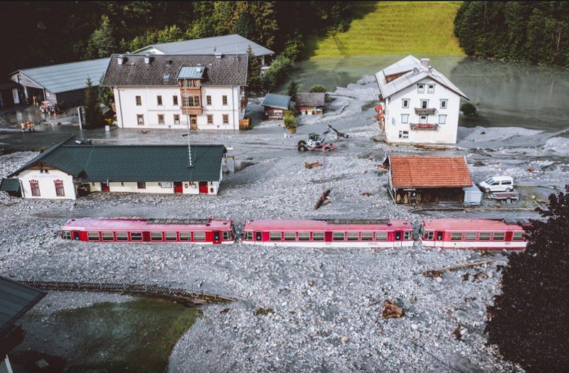Делови од Австрија и јужна Германија вчера беа погодени од силни поплави што предизвикаа бројни свлечишта, пренесува германски Билд. Свлечиште во близина на Салцбург затрпа воз и зароби луѓе во автомобили.