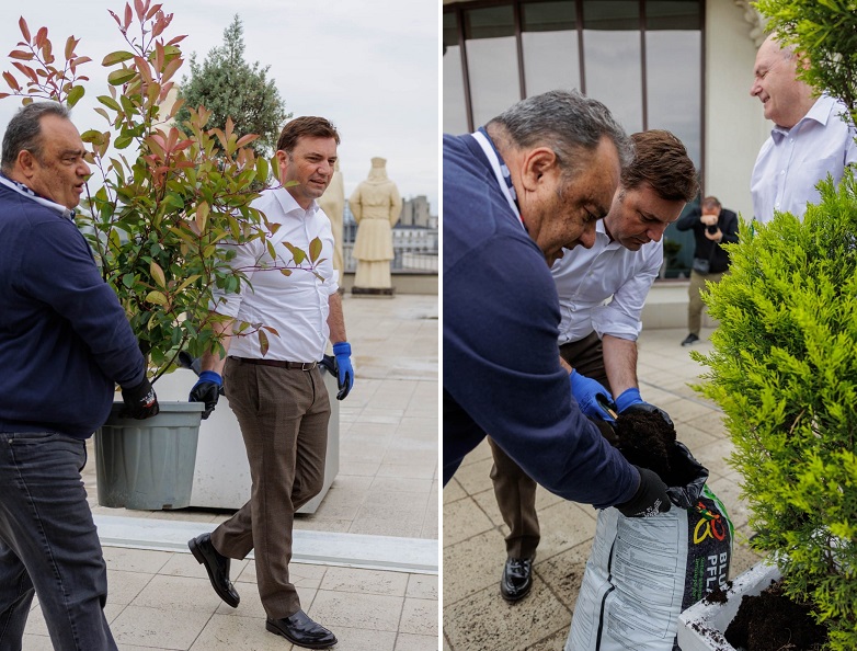 Министерот за надворешни работи и Претседавач со ОБСЕ, Бујар Османи заедно со вработените во МНР денеска засадуваа дрва на покривот на Министерството како пример за одговорно однесување кон животната средина и справување со проблемот со аерозагадувањето.