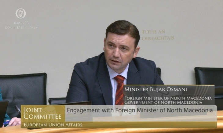 Во рамки на работната посета на Ирска, министерот за надворешни работи Бујар Османи имаше обраќање пред Комитетот за ЕУ прашања во ирскиот Парламент.