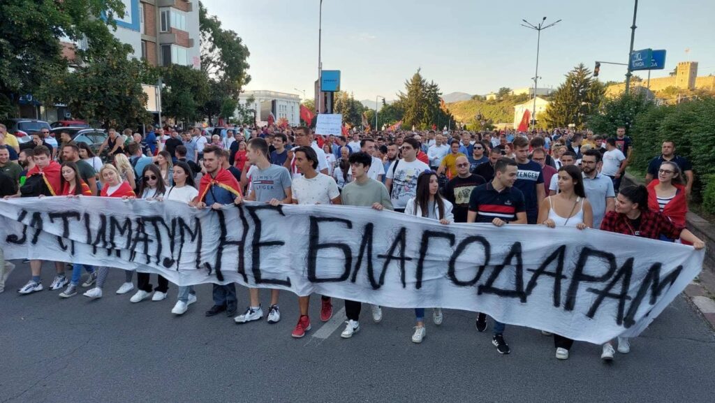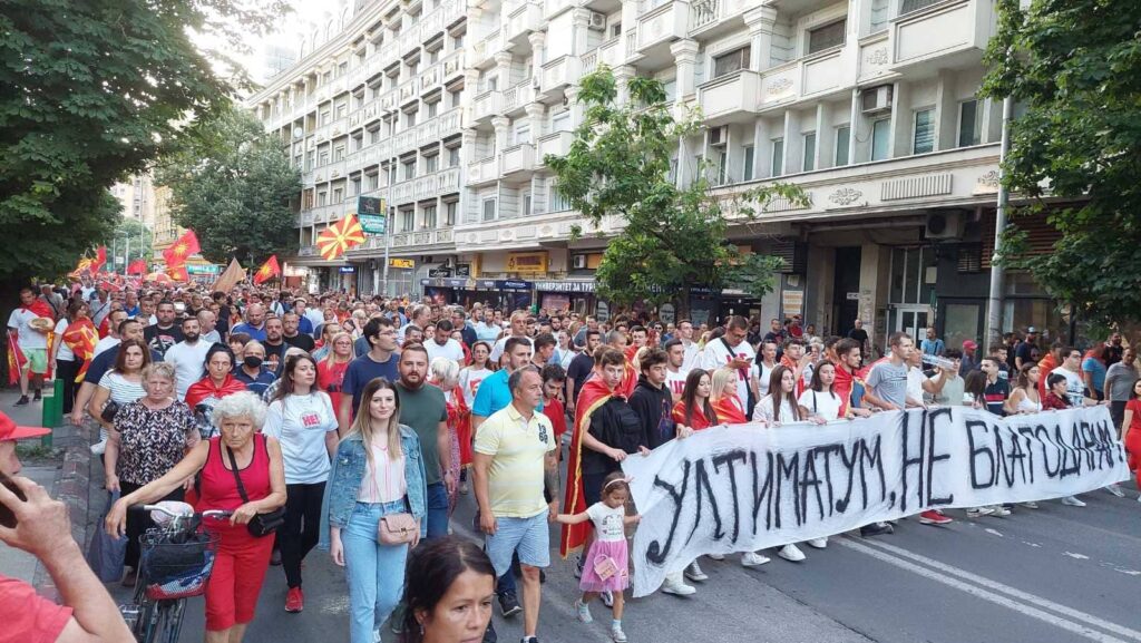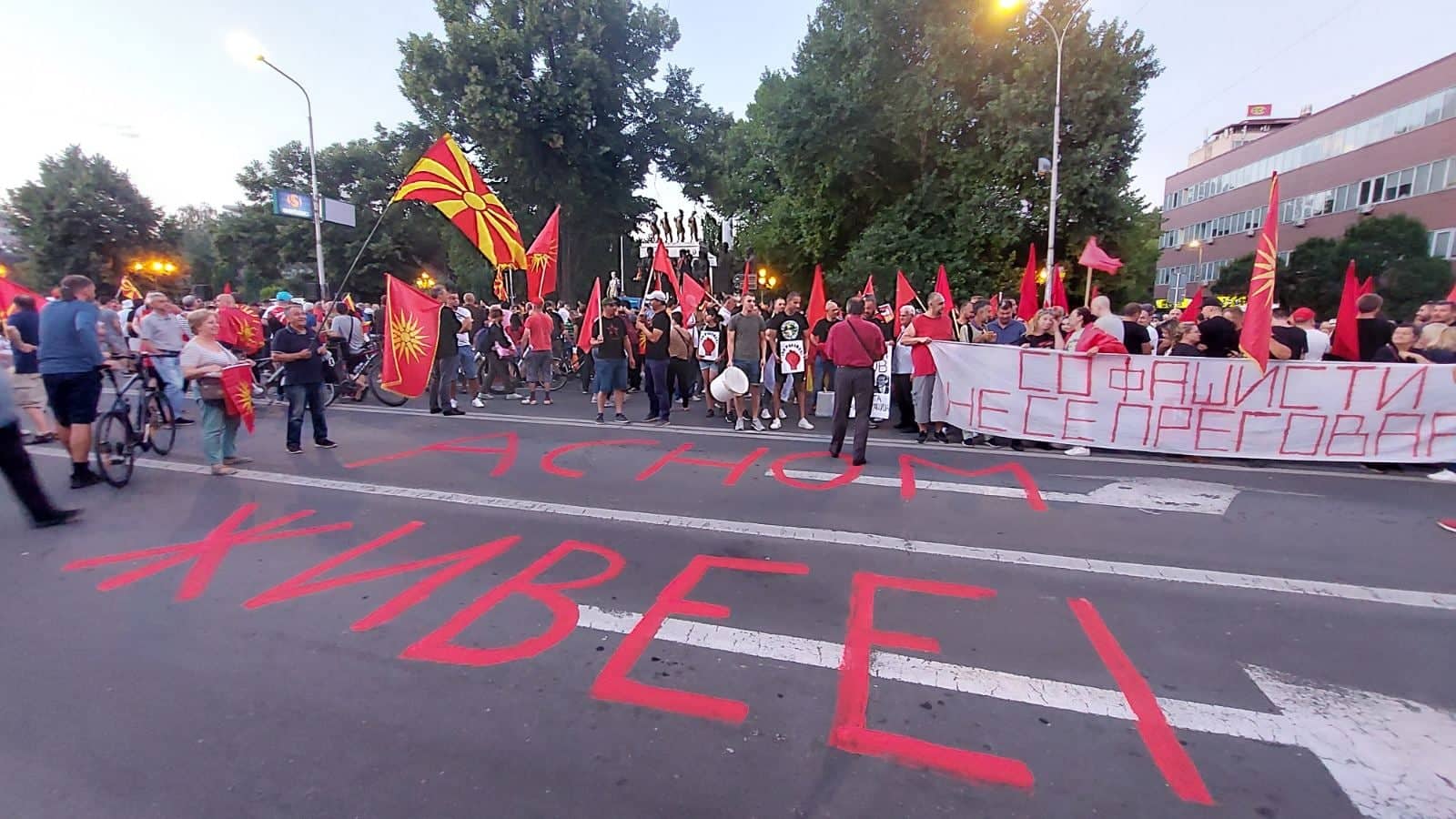 Пред Владата вечерва осми ден под мотото „Ултиматум, не благодарам“ продолжија протестите против францускиот предлог.