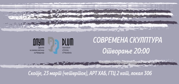 Изложба „Современа скулптура“ на Друштвото на ликовните уметници на Македонија (ДЛУМ) вечер ќе биде отворена во Уметничкиот центар „Арт Хаб“. Изложбата е дел од програмските активности и е можност за групно претставување на поновите истражувања и идеи за современата скулптура.