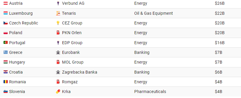 Кога се гледа регионот, постои огромен диспаритет меѓу земјите-членки на ЕУ и нивните највредни компании.