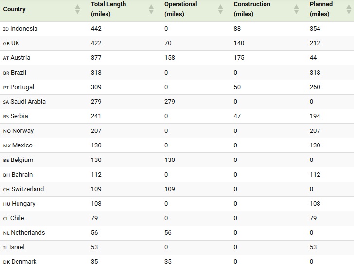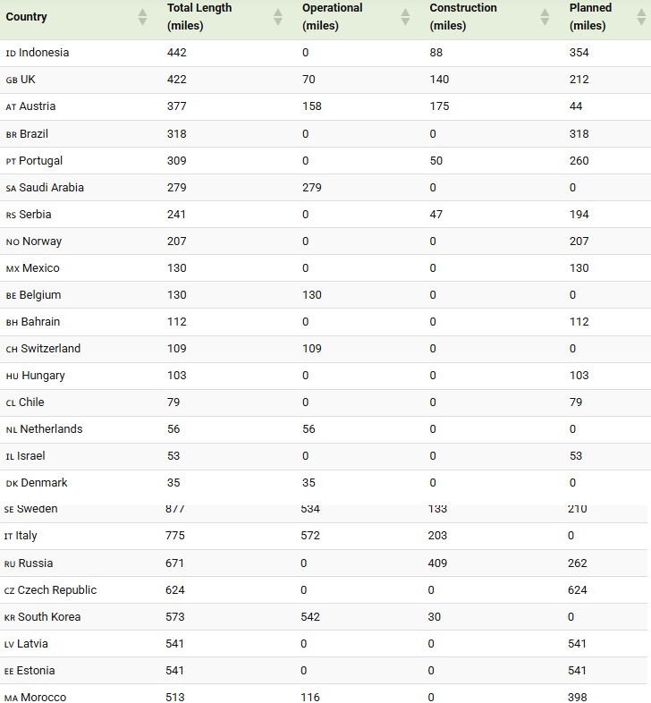 Нејзините амбициозни планови за проширување додаваат 8.000 милји во изградба и речиси 7.000 планирани. За споредба, следната најголема мрежа – Шпанија – има под 2.300 милји во употреба.