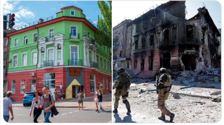 Оваа зграда, една од убавите во Мариупол ги преживеа и Првата и Втората светска војна, но не и руското бомбардирање и инвазија.