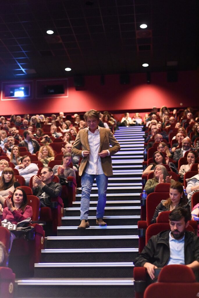 Славниот актер, режисер и сценарист, кој одбележа еден значаен период и на југословенскиот филм, ја изненади публиката со своето присуство во кино салата, а денес ќе има прес со новинарите.