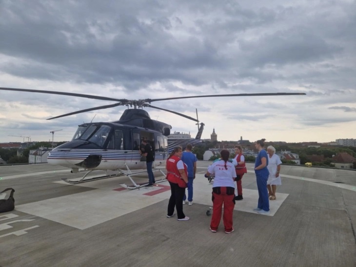 Пациентот со параплегија Леонид Индов транспортиран со хеликоптер од Виена во Скопје