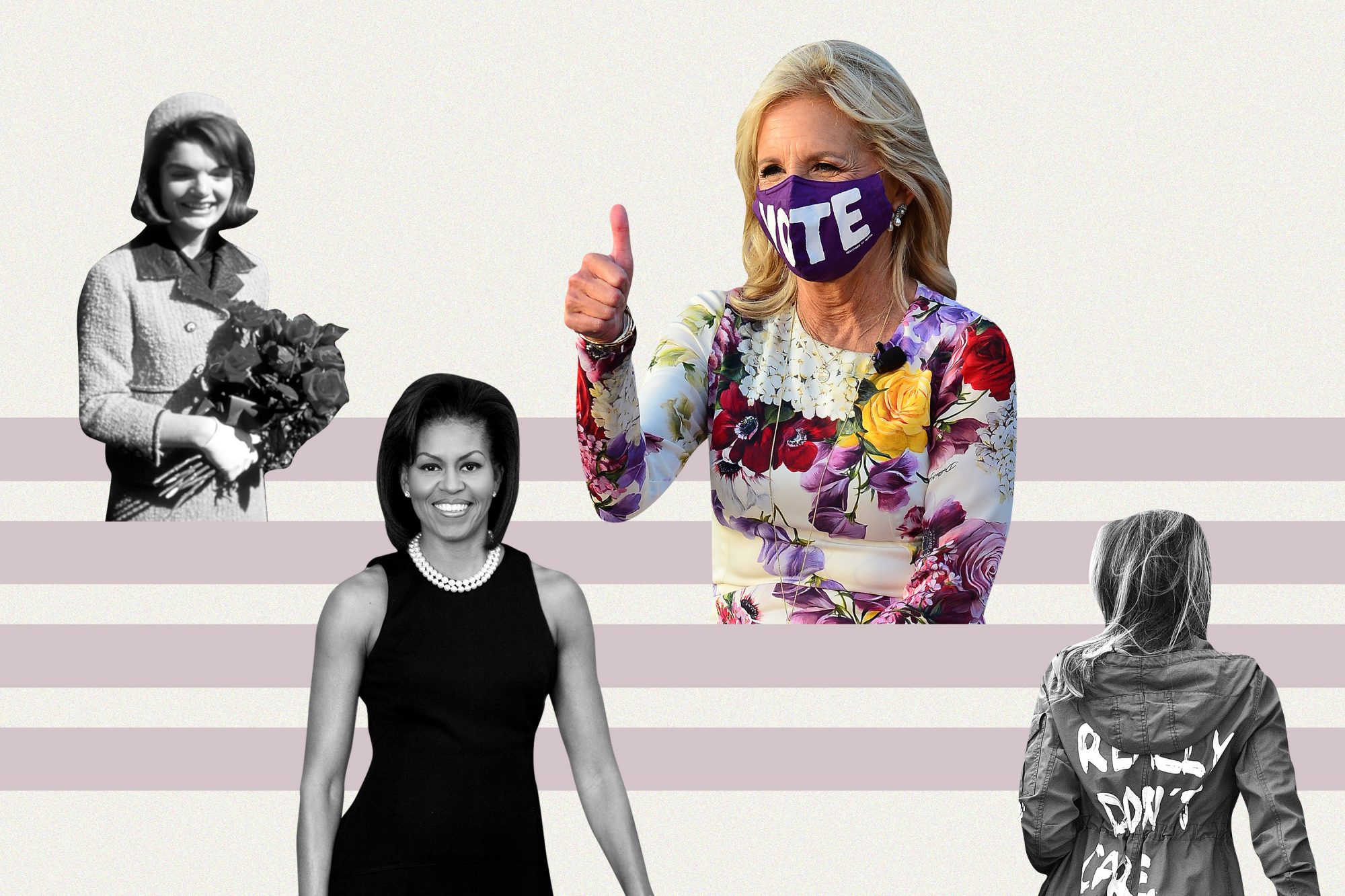 Неодамна, поранешните први дами – од Мишел Обама до Лора Буш – се најдоа на насловните страници за носење виолетови нијанси на претседателската церемонија на Џо Бајден во јануари. Модата беше алатка за првата дама да комуницира со американскиот народ. Носењето пурпурна боја, на пример, честопати се смета за почит кон движењето за гласање на жените во 1900-тите. Модните критичари исто така признаа дека бојата може да се толкува и да го симболизира единството како црвена и сина – двете основни бои на Републиканската и Демократската партија – кога се комбинираат, прават виолетова боја.